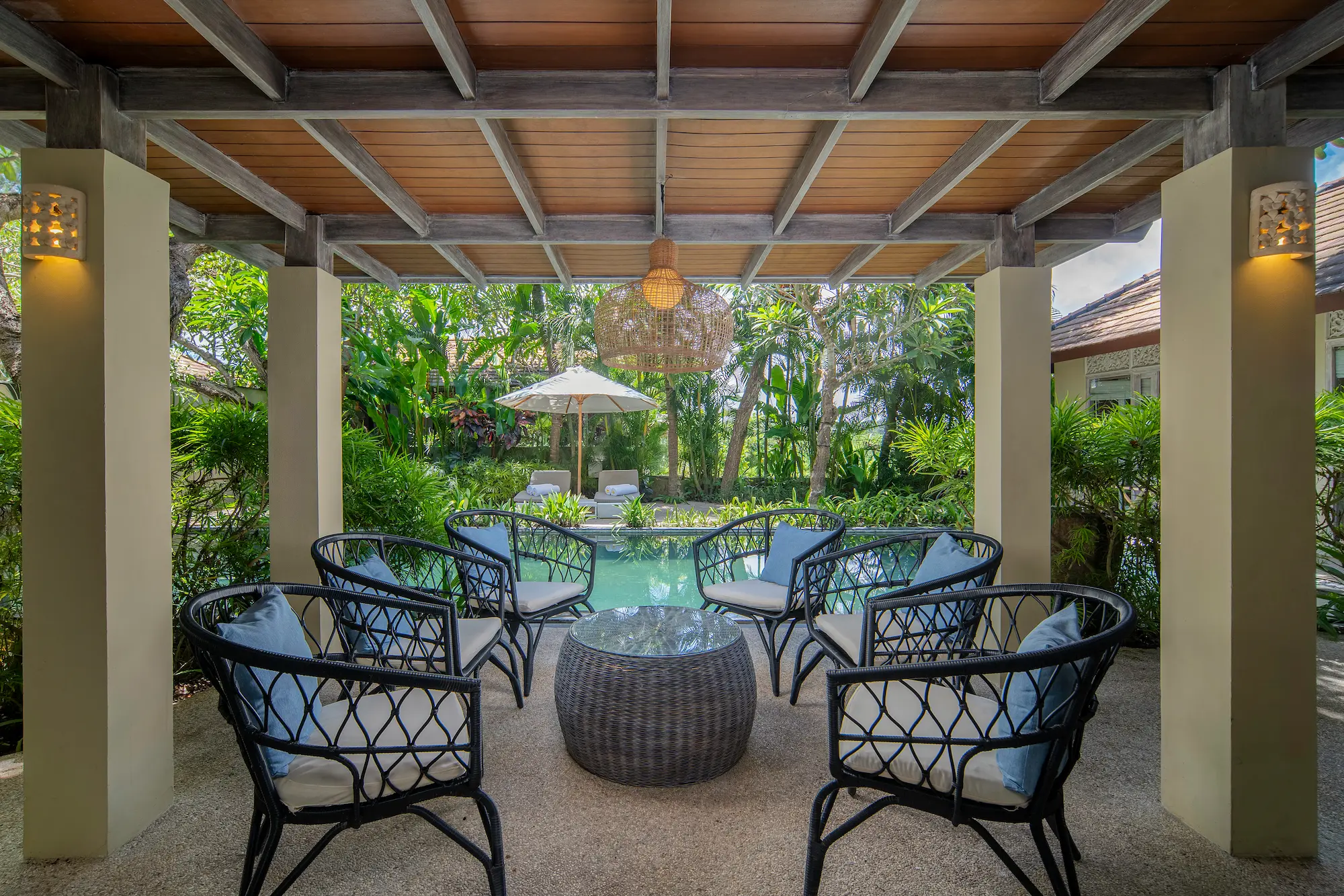With a spacious lounge, indoor dining area, and fully equipped kitchen, the villa invites guests to settle in and share slow moments. Outside, a 4x12-meter swimming pool is framed by greenery and sun loungers, setting the scene for long, carefree days.